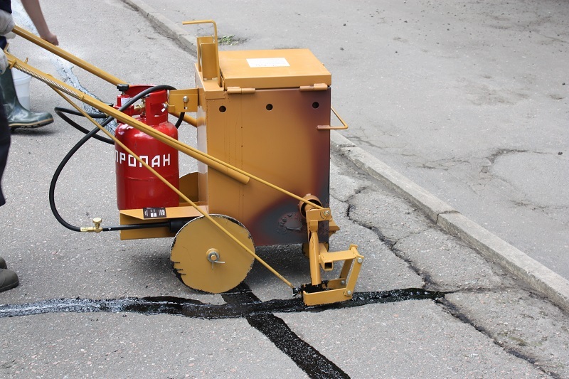Можно залить узкие трещины на асфальте горячими герметиками