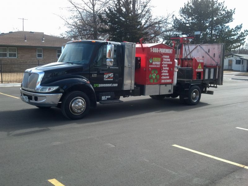 Затем мы глубоко очищаем поверхность, удаляя верхние 1/4 дюйма изношенного асфальта, нанося новый асфальт, и заделываем всю заплатку, создавая гладкую поверхность.